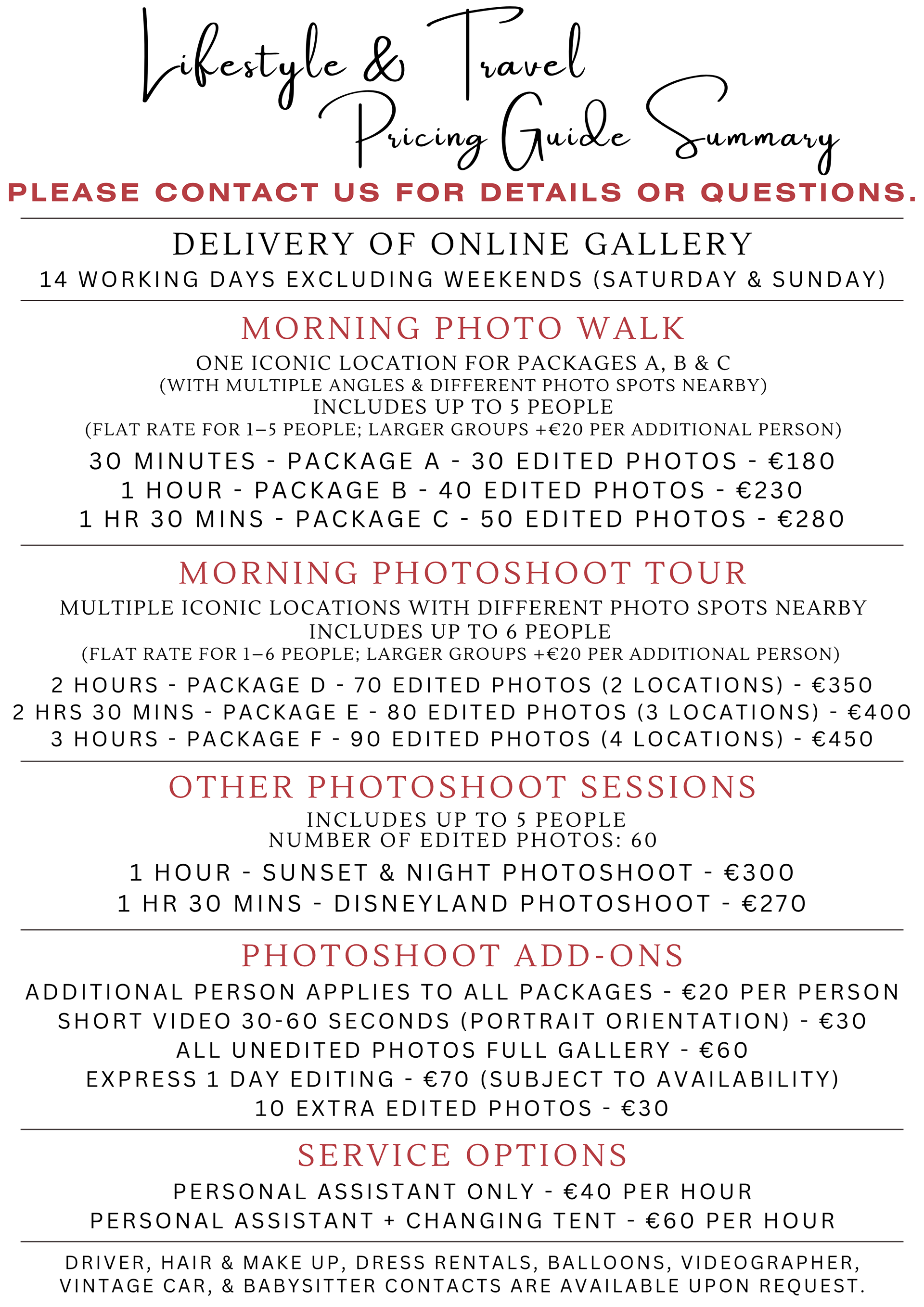 Lifestyle & Travel Photography Pricing