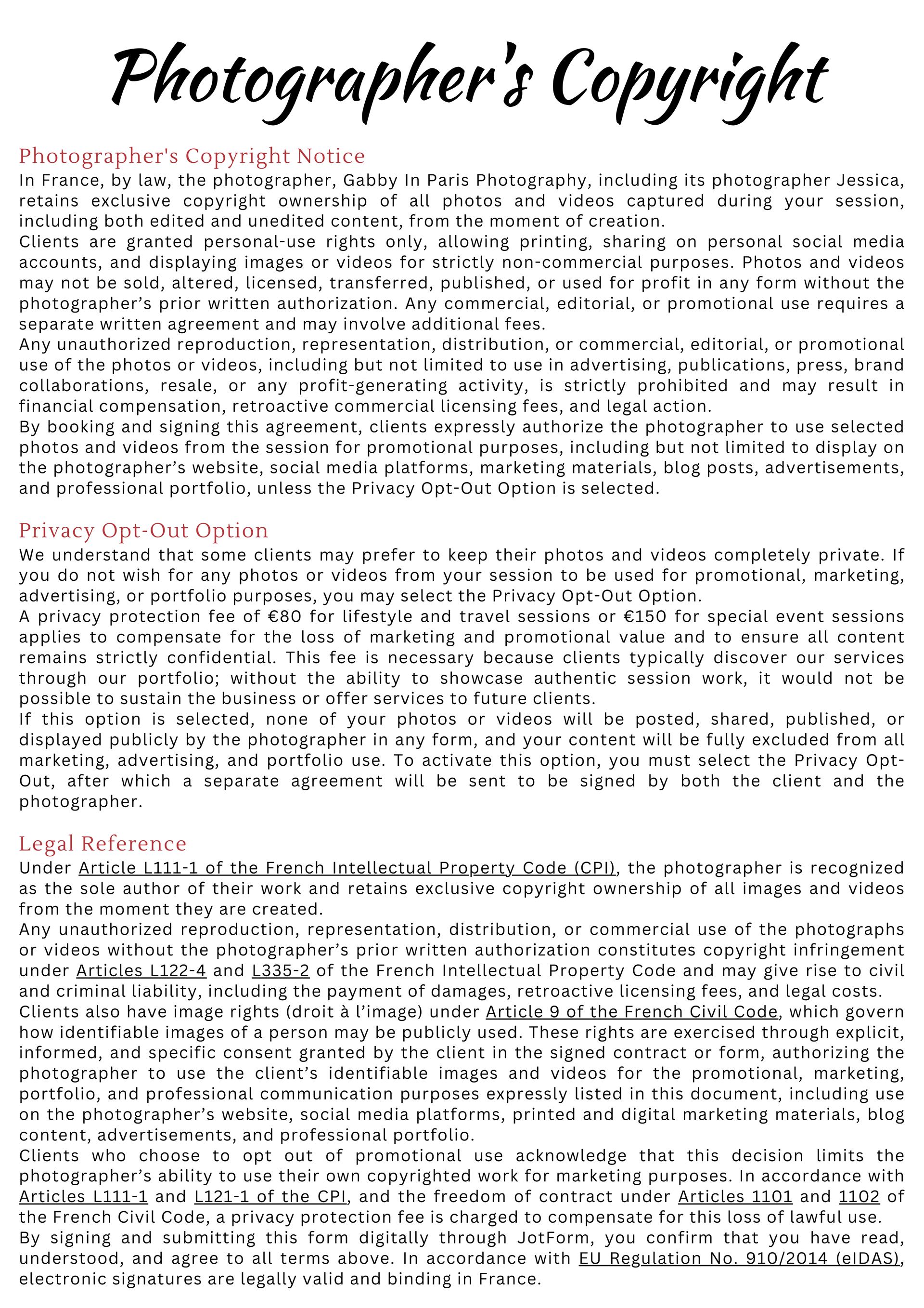 Photoshoot Policies, Terms & Important Information