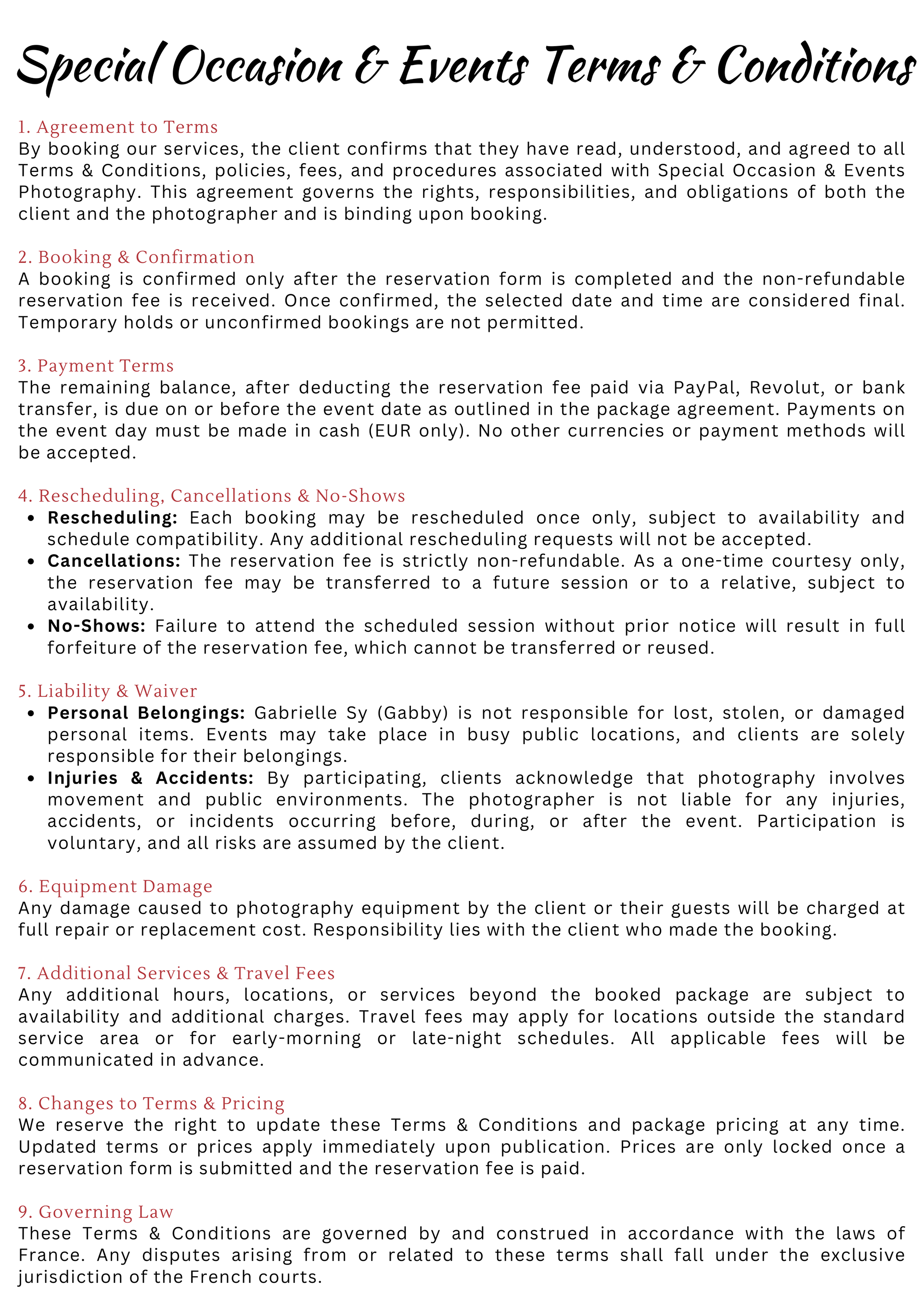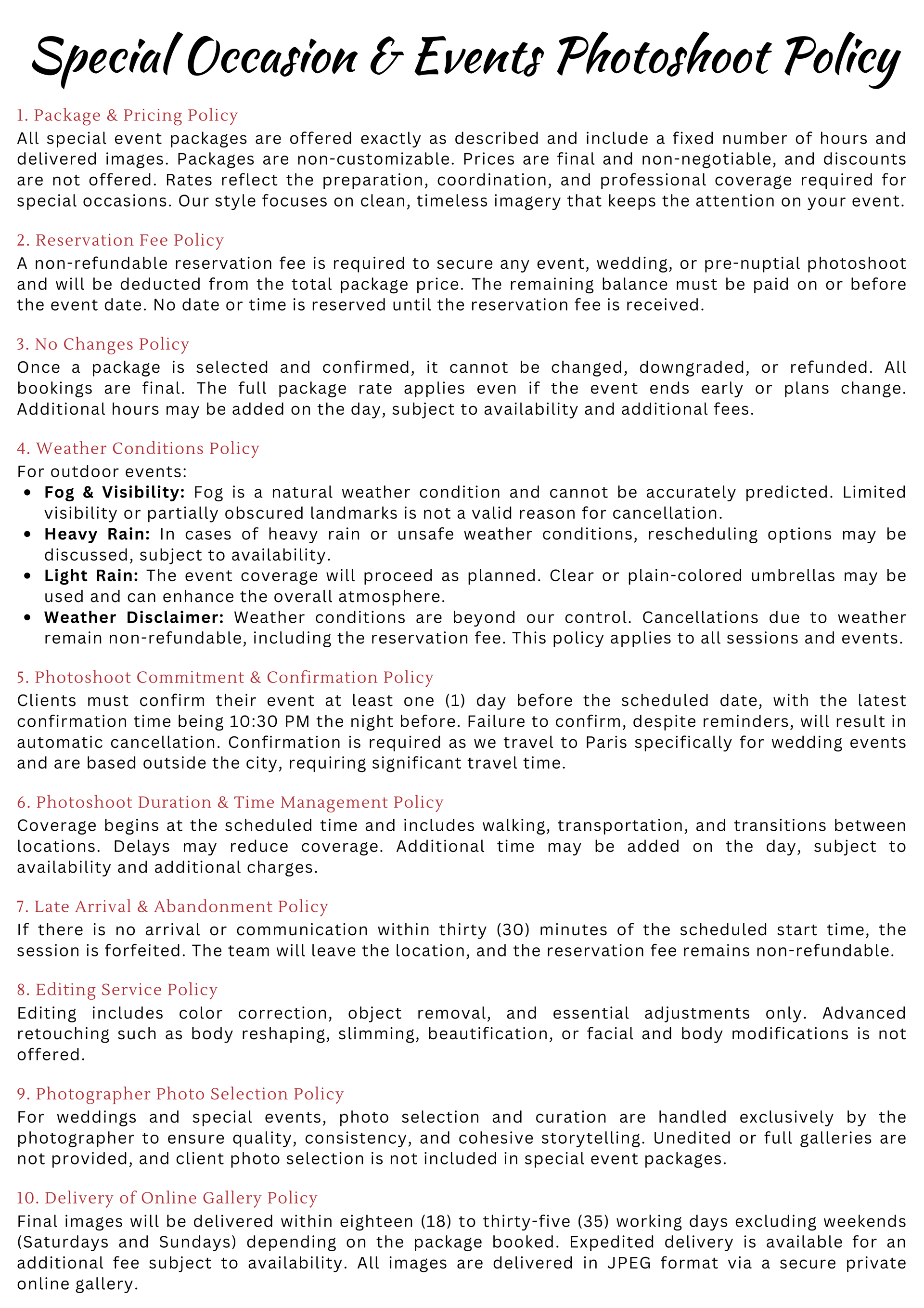 Photoshoot Policies, Terms & Important Information