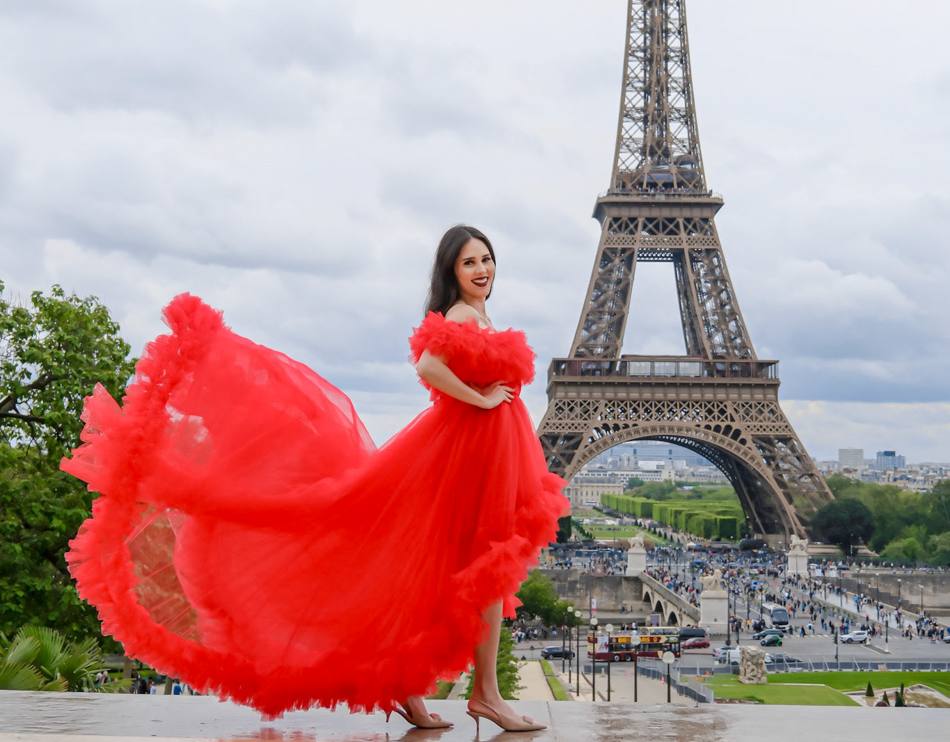 Red Tulle Gown
